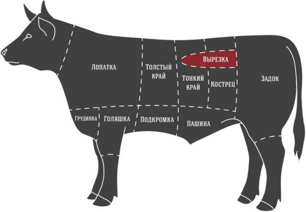 Вырезка – это длинная мышца из внутренней части спины. Она идет вдоль позвоночника и располагается так, что ей практически ничего не нужно делать. То есть мышца эта совершенно нетренированная, что и обеспечивает ее мягкость и нежность в приготовленном виде.