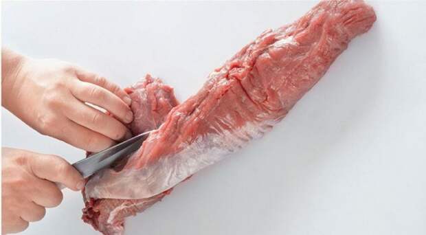 Важный момент Описанный вариант разделки вырезки подходит лишь в том случае, если вы приобрели зачищенный отруб. Если же вы принесли с рынка отруб с так называемой цепью и с дополнительным жиро-пленочным куском по краю, то потребуется более тщательная и длительная обработка. Чтобы сэкономить время и силы, советуем вам воздержаться от покупки подобного незачищенного мяса.