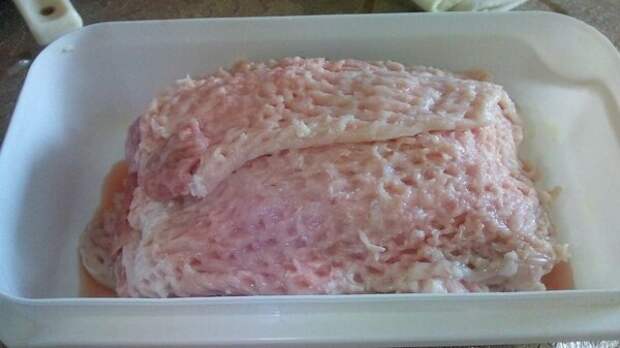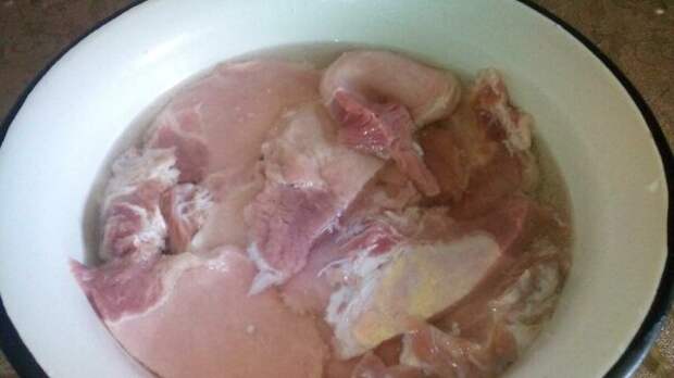 - Выкладываем их в глубокую миску и заливаем минеральной водой так, чтобы она полностью покрыла мясо. Оставляем на 1-2 часа.