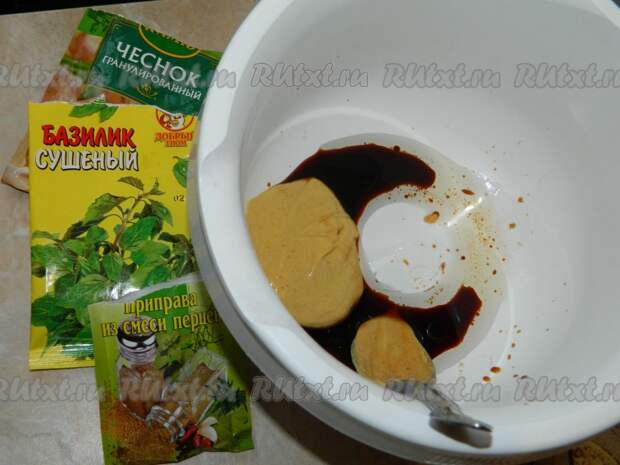 Курицу моем и вытираем.Смешиваем все ингредиенты для соуса.